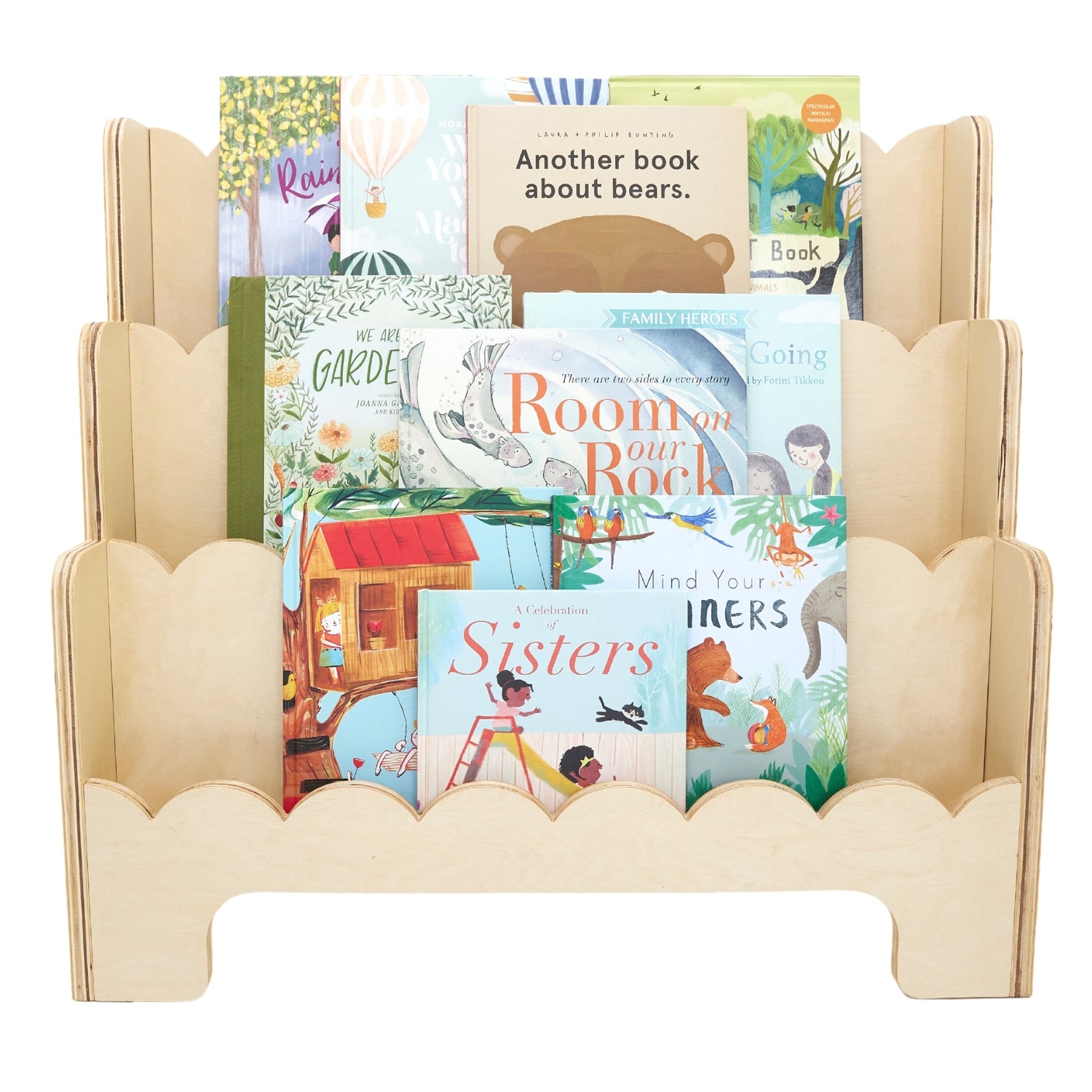 Wooden Kids Bookshelf w/Scalloped Edges