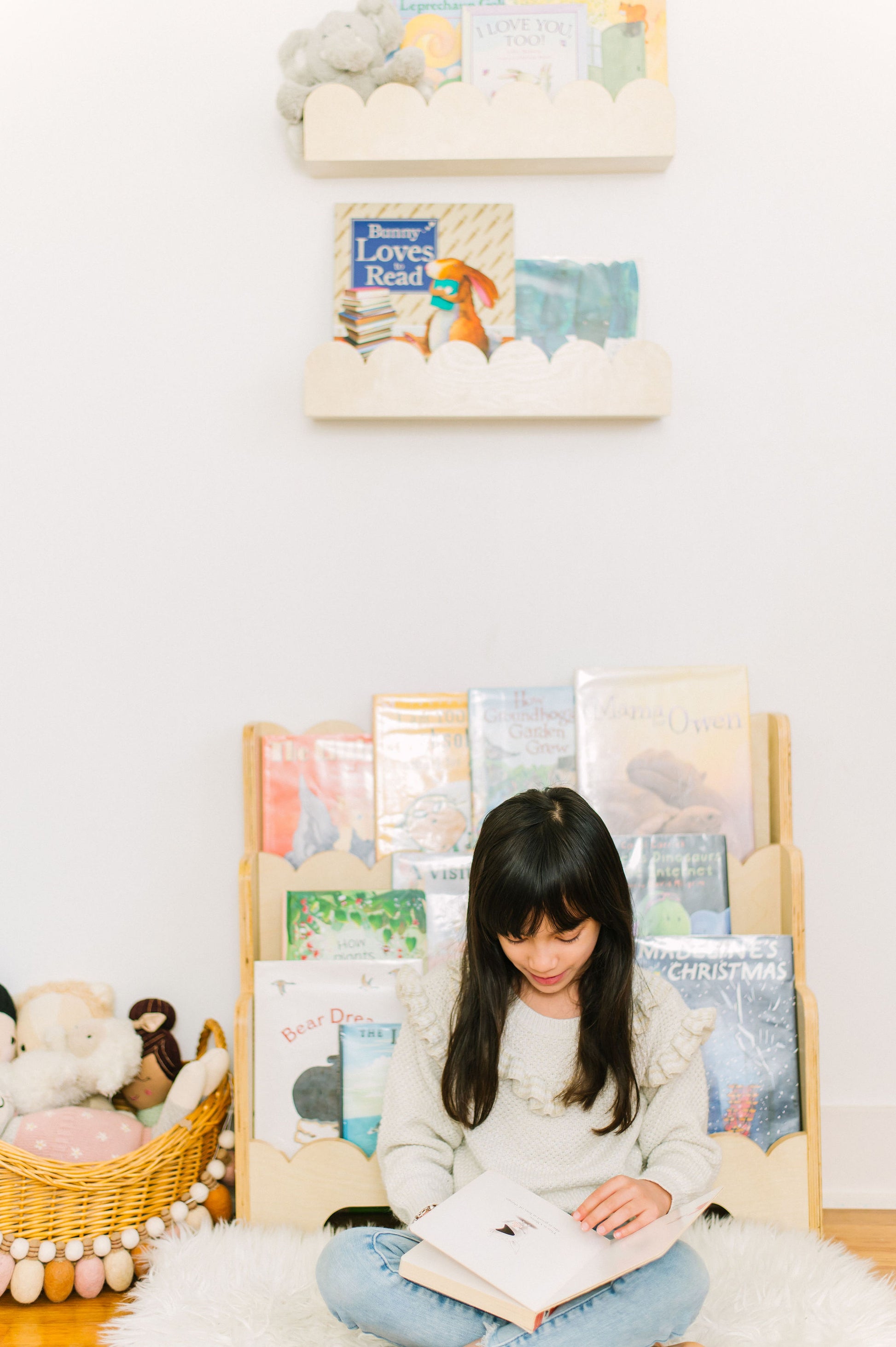 -Front-Facing Montessori Design: Our nursery wall shelves are inspired by Montessori learning principles and put young readers in charge of their choices; Books will face outward on each nursery shelf so kids can see what's available and quickly grab a book.